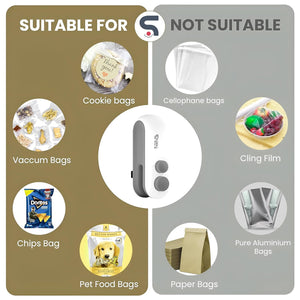 ๐๐๐ซ๐ฌ๐๐ญ๐ข๐ฅ๐ ๐๐๐ ๐๐จ๐ฆ๐ฉ๐๐ญ๐ข๐๐ข๐ฅ๐ข๐ญ๐ฒ: Perfect for resealing various food bags such as chips, snacks, candy, sandwiches, pet food, and mylar bags. Note: Not suitable for thin food storage bags, cellophane, pure aluminum, or kraft paper bags.